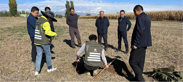二是分片指导。自治区三普办印发了《关于进一步加强自治区第三次全国土壤普查样品采集外部质量监督检查现场检查工作的通知》,组织由自治区三普办技术人员、分片包县专家、自治区级质控专家等组成的指导服务组赴工作开展相对较慢的地(州、市)重点开展外部质量监督检查,主要查看预设样点定位、远景照片拍摄角度、采样坑分布排列、采样坑外观修整、表层土壤容重环刀法、表层土壤水稳大团聚体修样手法、地类变更等野外实操技术,与外业调查采样领队深入交流技术要点,对野外作业过程提出工作要求,为自治区土壤普查工作顺利开展夯实了技术基础。