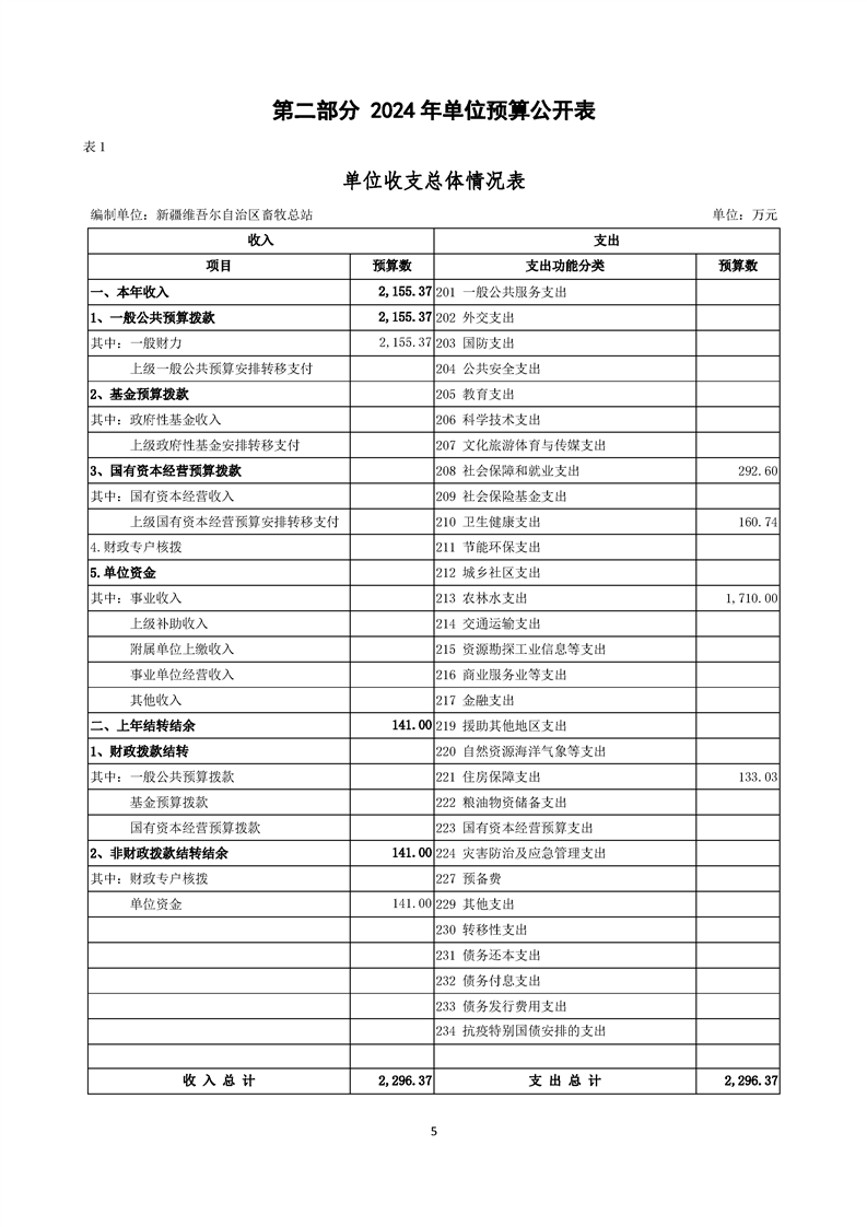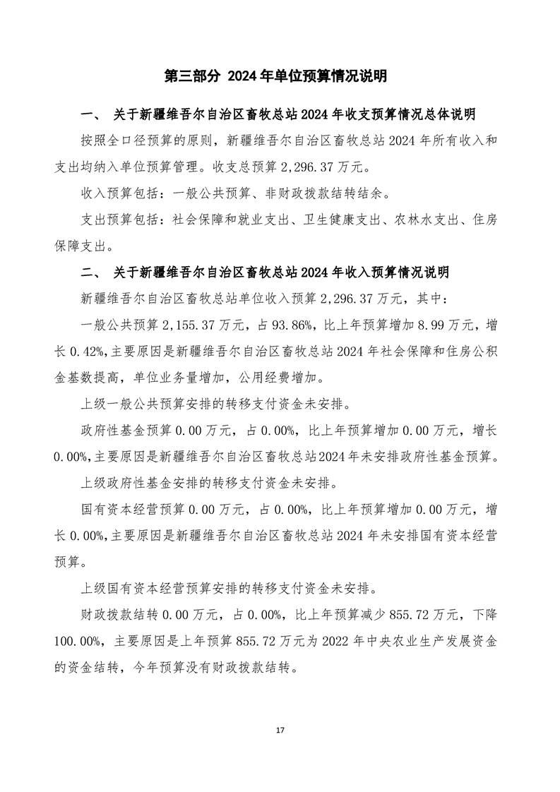 新疆维吾尔自治区畜牧总站2024年单位预算公开 -银河官网